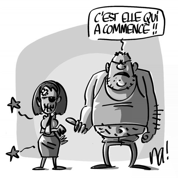 Sans vouloir juger une tradition certainement vieille de plusieurs décennies, je trouve quand même bizarre que le mari lui n’encourt aucune sanction particulière; la pratique est tolérée. Notons aussi que les objets incriminés sont ceux que la femme a le plus facilement à portée de main. Et si la bagarre éclate loin de la cuisine, elle ne doit pas le mordre, parce que Monsieur peut mourir suite à la morsure de sa femme. Et la femme elle, elle ne risque certainement pas de mourir des coups de son mari ?!?