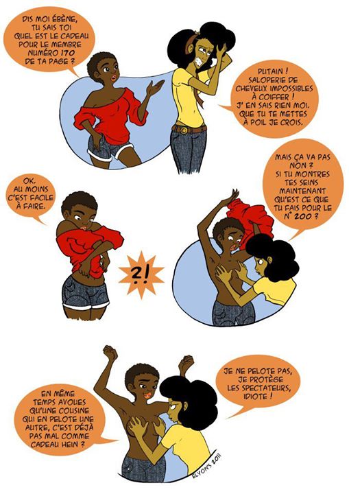 Mises en ligne il y a 1 an sur une page facebook, les (més) aventures d’ Ebène et ses copines rassemblent de plus en plus de fans dans l’attente d’une version papier, d’où l’envie de faire passer Ebène, du virtuel (numérique) au semi-réel (papier).
