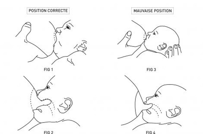 4. Son menton est collé au sein ainsi que le bout de son nez.