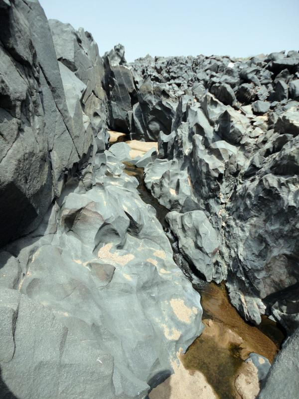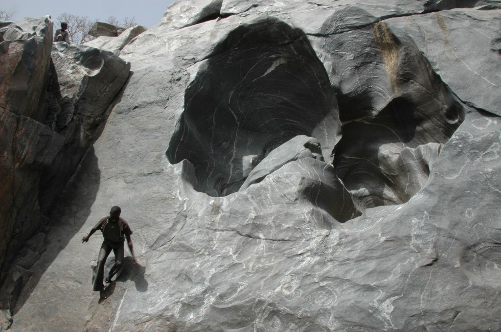 Sur place, j’ai pris un guide. Boubacari. Il était à la barrière et j’ai accepté ses services. L’entrée du site est à 500Fcfa et les services des guides à partir de 2500Fcfa. Prévoyez de la monnaie 😉 Wikipédia dit que les Gorges de Kola sont d’une longueur de 4 kilomètres et d’une profondeur de 30 à 350 mètres et que certaines pierres atteignent 20 mètres de profondeur. Un aménagement a été réalisé pour faciliter la descente d’une cinquantaine de mètres au fond des gorges. Les rochers ont été taillés et polis par les eaux qui les recouvrent complètement durant la saison des pluies. En fait le site se trouve dans le lit du Mayo-Louti. Il y a donc toujours un filet d’eau au fond des gorges. Une eau froide, claire et limpide qui sort de la roche…