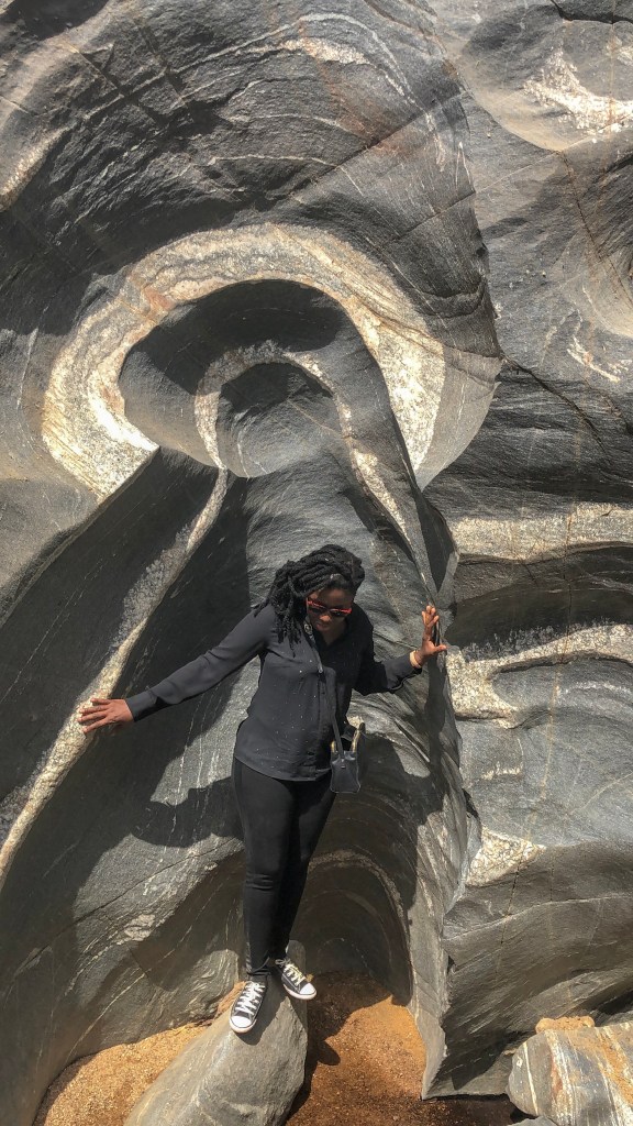 Plusieurs roches ont des formes merveilleuses, comme celle qui ressemble à une vierge marie. J’ai aussi vu une carte de l’Afrique, avec Madagascar, une empreinte de pied, une bague et même un cœur pour les amoureux. Il y aurait même parmi les grottes les appartements du diable (chambre et salon). Je ne suis pas allée voir pour vérifier s’il y était. Il faisait suffisamment chaud comme ça pour que j’aille le visiter 🙂